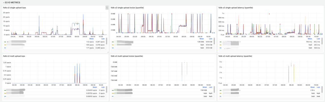 StarRocks 的监控可以无缝对接 Prometheus 和 Grafana,使用 StarRocks 存算分离版本后,我们根据建议首先配置了较为完善的监控,StarRocks 存算分离在存算一体基础上增加了不少对于系统 I/O 等指标,通过这些监控我们可以直观查看当前的各种指标。
