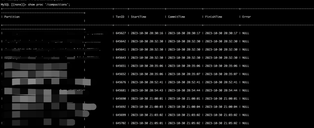 另外,我们使用过程中比较关注查询性能问题,而也出现过由于版本太多导致了查询时读取文件数较多的问题,在社区提醒下,可以利用 SQL 监控当前集群 Compaction 情况: