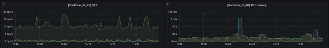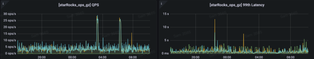 我们原先 Druid 的实时查询 P99 在迁移到 StarRocks 后性能表现与原先持平,大表查询都在 4 秒左右;中小表秒级响应。
