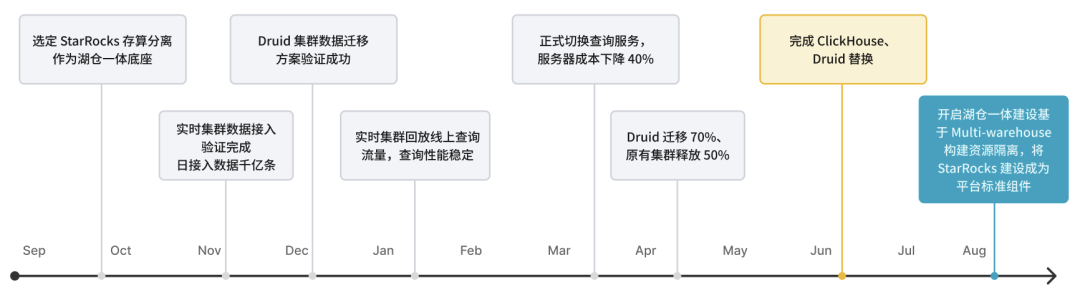 为此,我们在设计迁移方案时,遵循的基本思路是从影响范围由小到大逐渐灰度,实现快速试错快速修复,并将成功经验快速推广。基于这个出发点我们优先选择了 ClickHouse 实时写入子集群作为对象,将其作为切入点。以下是我们的迁移路线图: