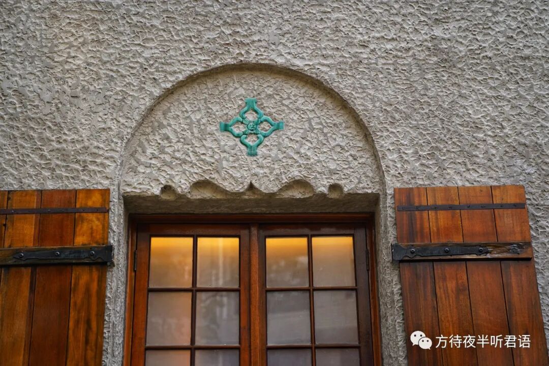 窗户和窗台上都有绿色陶饰