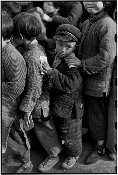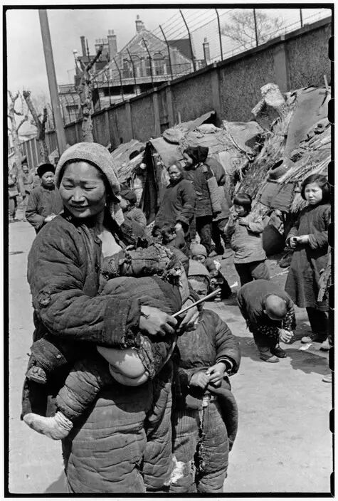 1949正是中国历史转折的一年。1948年12月初,布列松作为《生活》杂志特派摄影记者飞抵北平。他的摄影集《FROM ONE CHINA TO THE OTHER》1954年出版,书名译成中文《从一个中国到另一个中国》,蕴含“转折”之意。他用他35毫米的莱卡照相机记录了当时中国变革中的历史瞬间以及当时中国百姓的悲惨和苦难。