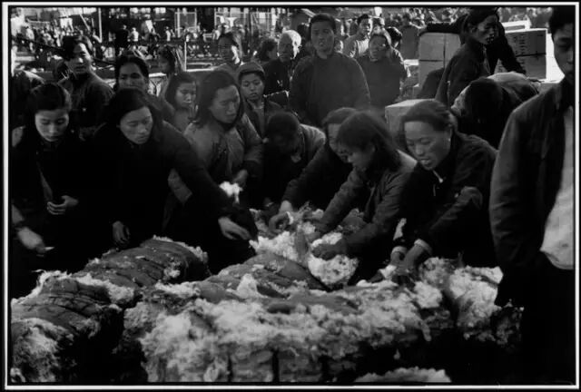 穷人撕开码头上的棉包,这些女人要么卖掉把棉花或者用它来为家人缝补棉袄。在漫长内战的最后一个冬天,许多人忍饥挨饿。上海,1948年12月—1949年1月