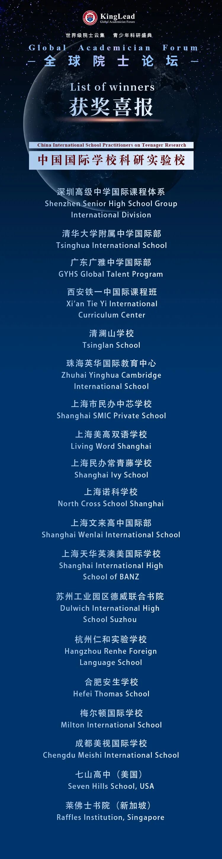 此次奖项更是国际顶尖学术界对国际学校与学生科研素养培养成果的认可,能够鼓励更多青少年立志投身于科学研究,推动科技创新人才培养,为世界科学发展做出贡献!