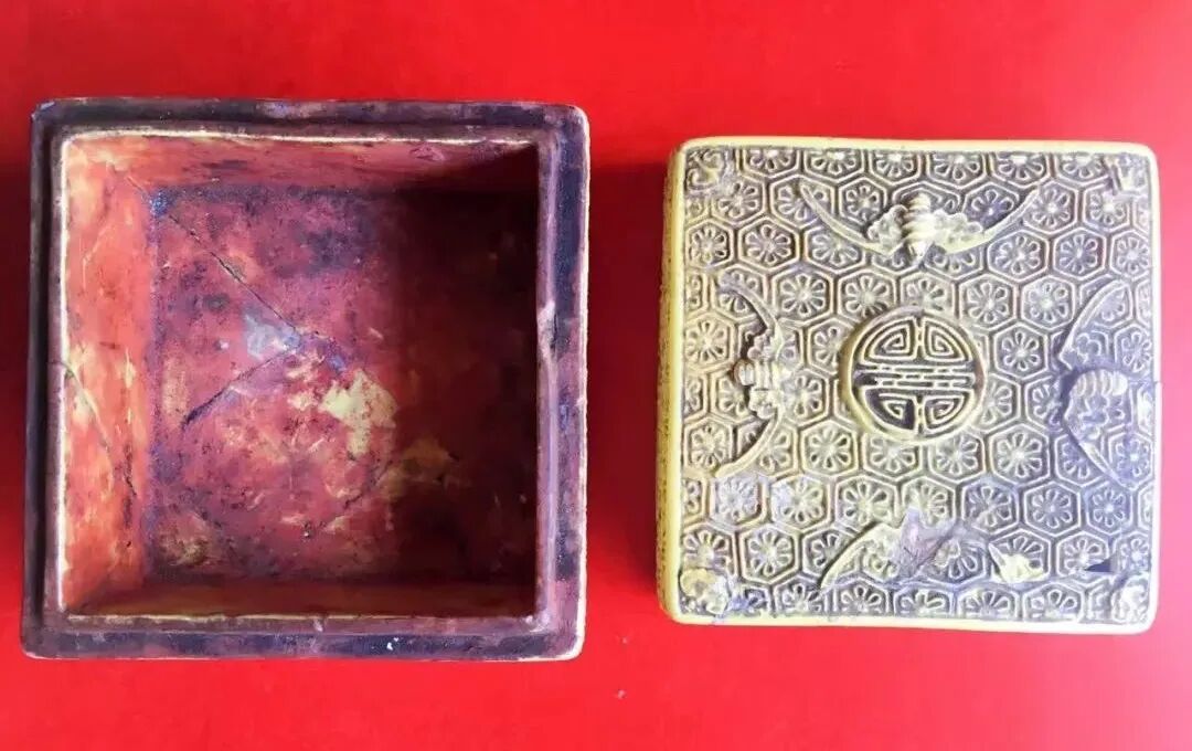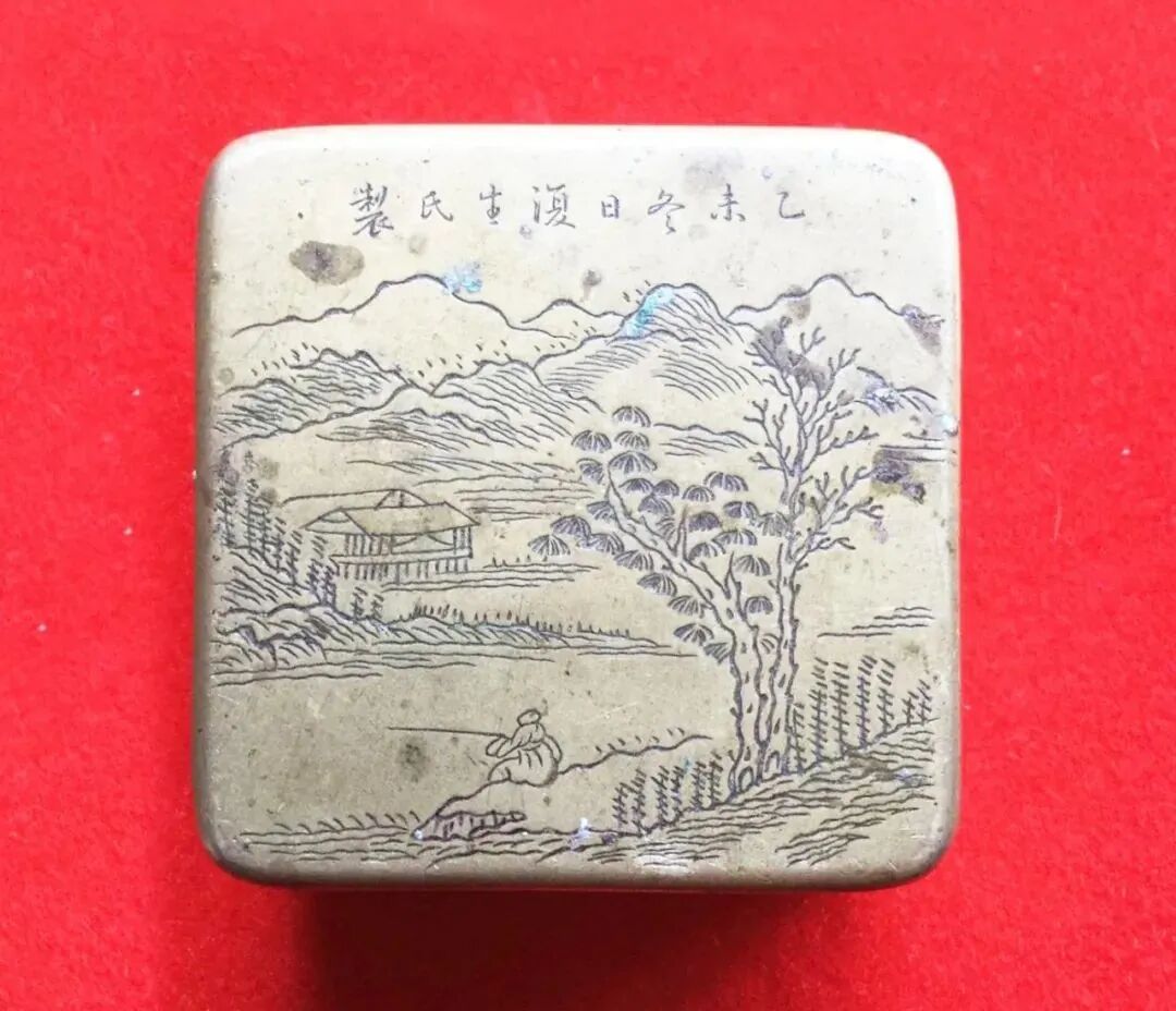 因当时是周末,谭士恺已将嗣同公遗留下来的宝物存放在银行了,不能取出来,只得怏怏而归。至10月8日,正是寒露之日,与维欣一道再赴岳阳。此次见面依然在枫林新村,依然是谭士恺、谭士怡、谭士愉接待了我们。就在此次,聊过之后,我们如愿见到了谭嗣同的三件遗物。其时阳光正好,阳光透过窗棂照耀在窗前书桌上,三件遗物被一一小心地放在大红金丝绒之上。谭士恺在一旁微笑在解说,耐心地任我与维欣仔细地看,翻来覆去地看。而我们心怀敬仰,铜墨盒、菊花砚台及御制印泥盒一一品赏,一一进行了拍摄,内心的激动溢于言表。最先拿出来的是铜墨盒,小小的方形,深沉的铜色,暗暗的哑光。我与维欣凑在一起仔细瞧,一一放在手掌上,再看看。然后,士恺大姐从客厅电视柜抽屉里拿出来一块方板子,上面铺着艳红色的丝绒布,将板子放在书桌上。我俩赶紧将墨盒放在红布上,亮亮的阳光照耀其上,墨盒有些了亮亮的光。但见铜墨盒上端刻有一行清秀端庄的小楷:“乙未冬日复生氏制”。复生是谭嗣同的字号,行书中带点楷体。谭士恺说,其字体、气势与谭嗣同家信中的文字大体一致,铜墨盒上的文字应为谭嗣同亲笔所书。仔细鉴赏这方墨盒,我俩不禁心中大悦,方寸之间一幅精美的山水画卷一览无余。只有7厘米见方的铜墨盒,有山有水,有房舍,有苍松翠柏,有小桥流水,画工精细、意境悠远。近前,一位钓者怡然自得地坐在大河边垂钓,望着远处重重叠叠的青山,山脚下绿树掩映着一栋房舍,身后两株老树一株枯萎,一株发出新芽。仅仅从画面上看,其构图写意有金石铁笔的遒劲气势,不难看出艺人的高超的刻铜技艺和娴熟的绘画功底。乙未年为清光绪二十一年(1895),距戊戍变法仅3年。当时30岁的谭嗣同正在著《仁学》,它是维新派的第一部哲学著作。此方刻铜墨盒见证了谭嗣同著《仁学》,除了“重实而不重名”与“高度尊崇孔子”外,偏要“于老树上发新芽”的意义也显而易见。铜墨盒是盛载墨汁的小器物,也是文人墨客传统的文房用品。它产生于清代道光时期,盛行于光绪、民国年间。铜墨盒比石砚更轻巧灵便,并能保持墨色的滑润和黑亮,故在当时颇受欢迎,成为文人墨客案前的必备之物。打开墨盒,内壁依然有旧旧的墨迹,似有淡淡的墨香飘然而来。再看盒底,“松竹”两字印款清晰如昨,应是清代北京名店松竹斋刻的山水墨盒。此墨盒有复生款,且出自谭家,流传有序,且可以佐证此盒是谭嗣同亲自购置的自用之物。再看砚台,此砚台为小长方形,比我之前所见过的古砚台都要精致,外面套着暗红色的红木外盖。此为端砚,拿在手里,沉甸甸的,打开外套,一方精致而深沉的砚台坦露出来了。正面为砚台,但口子很浅,再看背面,上半部为文字,字有些漫漶了,两人将砚台拿至眼前看了看,竟为:刚而柔,方且直,仁之体,礼之德,和其光,守其墨,不磷淄,永受式。康熙乙亥春三月书竹坨。下半部圆形圈里有几个大篆体字:来生长乐,有些佛教的意味。再看侧面,意外地发现,双侧都有文字。左侧为楷体字,为一副对联:“松风水月,未足比其清华;仙露明珠,讵能方其朗润。”此联出自唐太宗所写的《大唐三藏圣教序》,此联语是赞美玄奘的,又是佛教语言呀。再看左侧,就在下方落有两块方形框,内有隶书:一曰臣竹垞印;一曰朱氏珍玩。怎么不见谭嗣同的题款?见我们对此方砚台有些疑惑,谭士恺连忙解说道,据其父谭志浩说,此方砚台是嗣同公收藏的砚台,其主人为有清一代第一儒家朱彝尊,“竹垞”为其别号。因家有竹垞,故称。查慎行赋诗《逆水逆风歌戏呈竹垞》云:“却咲竹垞老,与我同舟还遇风。”看来谭嗣同仰慕朱氏的学问,也就收藏了朱氏用过的砚台。最后,便是小小的大清光绪年制的瓷器印泥盒,呈明黄色,黄里却有些暗色了,为正方形,是被摔坏后重新粘贴起来的。原来这件宝物是光绪年间官窑烧制的皇宫瓷器,盖面正中为圆形阳文“寿”字,其四边各有一只蝙蝠,四周布满精致的六边形花纹,六边形框内为一朵六瓣花,中有小圆点花蕊。再看盒底,则没有花纹,中有阳文“大清光绪年制”底款印记。再小心翼翼地打开看,里面还有陈旧的红色印泥印渍。谭士恺说,据传印泥盒是光绪帝赏赐给谭嗣同的。在他小时候,此印泥盒盖就破裂了一点,后来某部门借去展览,又不慎将印泥盒底弄破并粘接。这件印泥盒虽伤痕累累,但它见证了戊戌变法那段悲壮的史实,其历史价值是其他官窑瓷器无法替代的。一一再完,我俩将三件宝物整齐地摆在丝绒布上,亮亮的红色,与陈旧气息相互交融,散发着幽幽的光芒,乃令我们不忍离去。不由再次触摸这些当年谭嗣同随身携带遗物,仿佛通往一条往昔的幽径,细心踏寻,窥视,当年谭嗣同“我自横刀向天笑,去留肝胆两昆仑”的大义凛然、惊天动地的气节尤在眼前。看完之后,谭士悦大姐赶紧又给我们拿来了一本旧旧的相簿,翻了翻,都是些谭家的旧照片,陈年往事滚滚而来,没有谭嗣同与李闺的照片。在相册的前面几页,我倒看到了谭训聪在台湾拍的相片,甚至包括谭训聪的逝世时他人撰写的“谭故教师训聪行状”、谭训聪追悼大会及墓地等相片。有一张半身相片,用黑色钢笔在周围题满了诗,却谭训聪满脸悲戚。再一一地看,不管谭训聪在何种场合,他都满面凝重,未尝有过开心的模样。想想吧,妻子儿女都在大陆,至亲骨肉天各一方,三十年没有半点音信,是生是死无