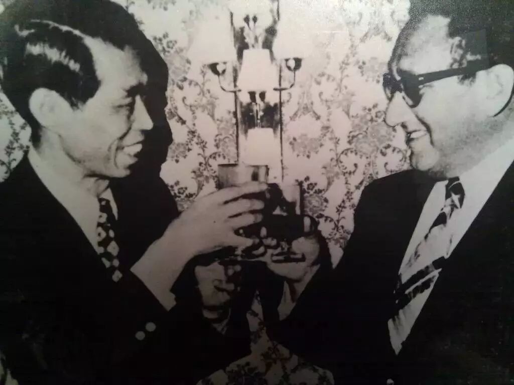左宗棠鸡的发明人彭长贵(左)与基辛格(右)