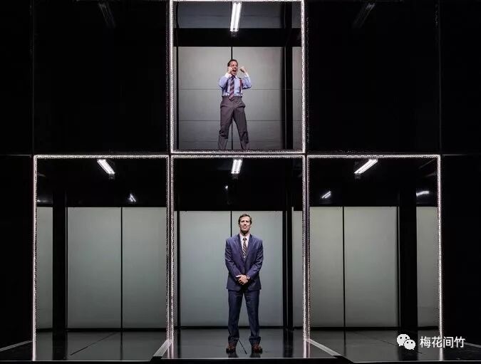 除了扎实的剧作,舞台也令人惊喜。舞台设计John Lee Beatty为Junk打造了一个非常后现代感的世界:一格一格的镜面分割了舞台,镜面光滑干净,但把缝隙坦然地暴露在空气里,背后的LED屏幕闪动着惊悚的交易数字,一切以一种极简又强有力的风格冲击着观众的感官。而这种风格跟戏本身的气质又非常贴合,冷峻的、快节奏的、给人疏离感的。