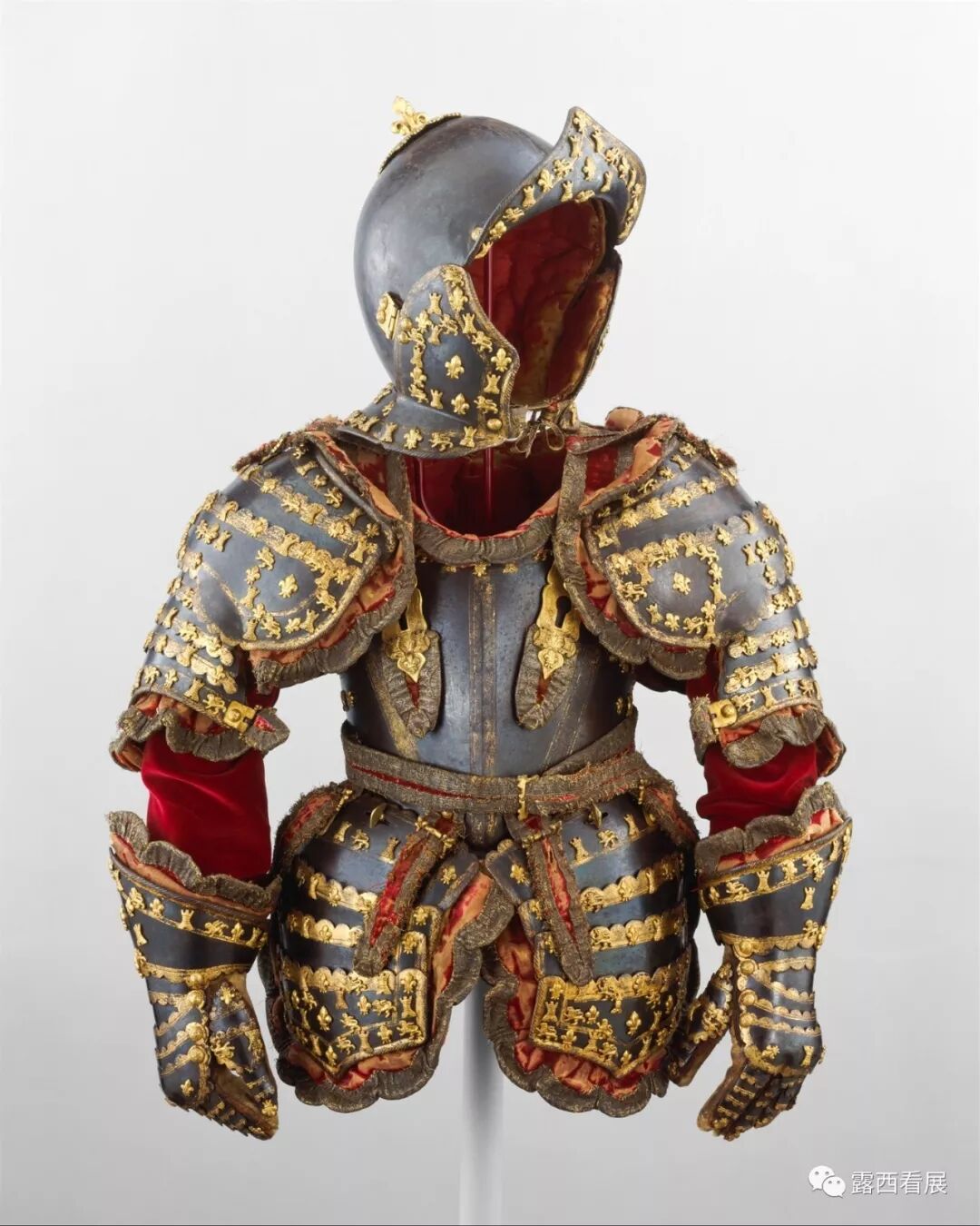 刀枪棍棒钢铁盔甲也许是爸爸们的最爱:这里不仅包括雄壮的中世纪欧洲盔甲和战马、还有神奇瑰丽的日本盔甲和面具。上图是展厅376中一件很小巧的盔甲,于1712年左右为法国的一位年仅5岁的小王子制作,装饰着象征法国的金色百合花以及象征西班牙国土的城堡和狮子,盔甲片之间由深红色丝绸连接着。有意思的是,有一部分丝绸中还填充着一份1711年的法国报纸。