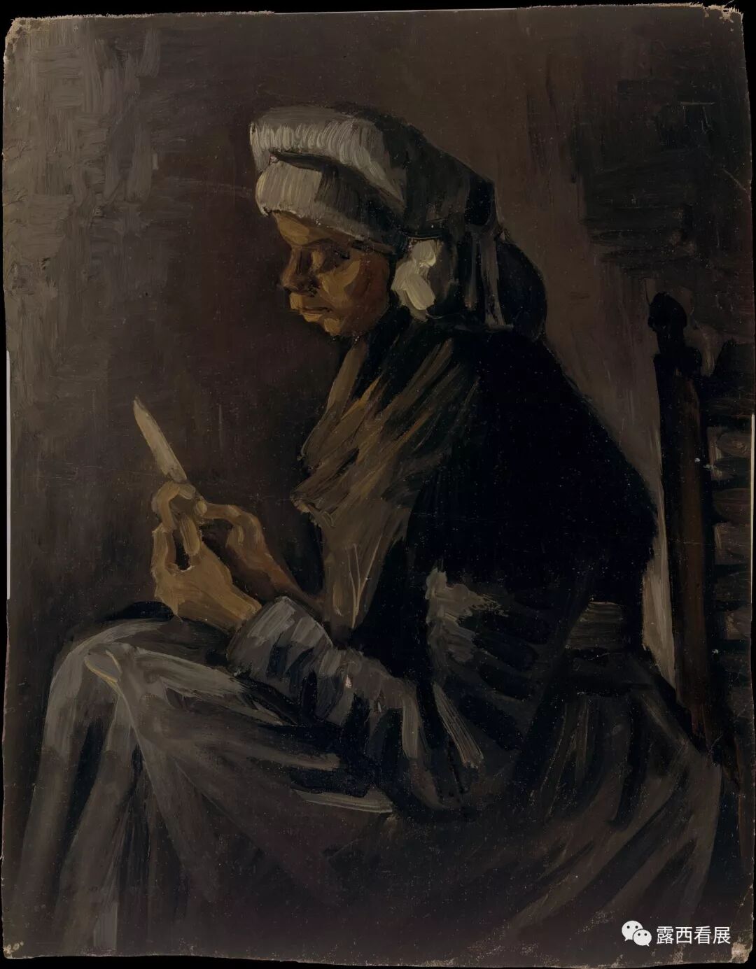 梵高一共只活了37年,却在生命最后十年创造出了他辉煌的近九百幅油画作品,展厅825中还展出了梵高稍早期1885年绘制的两幅农民画,此时的他关注法国农民们艰苦朴素的生活、色调黑暗灰沉(上图)。