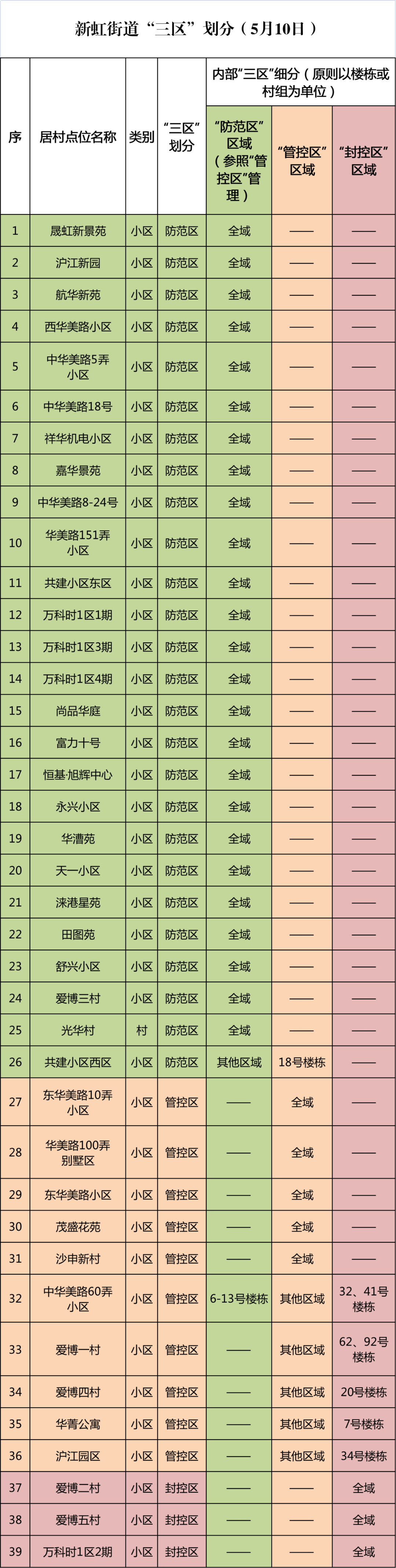 现发布闵行区最新一轮居民小区、自然村“三区”划分情况(信息数据截止时间为5月10日)。