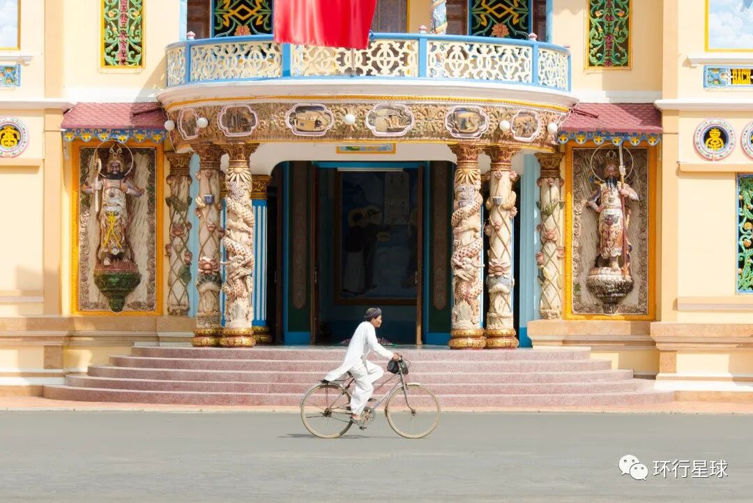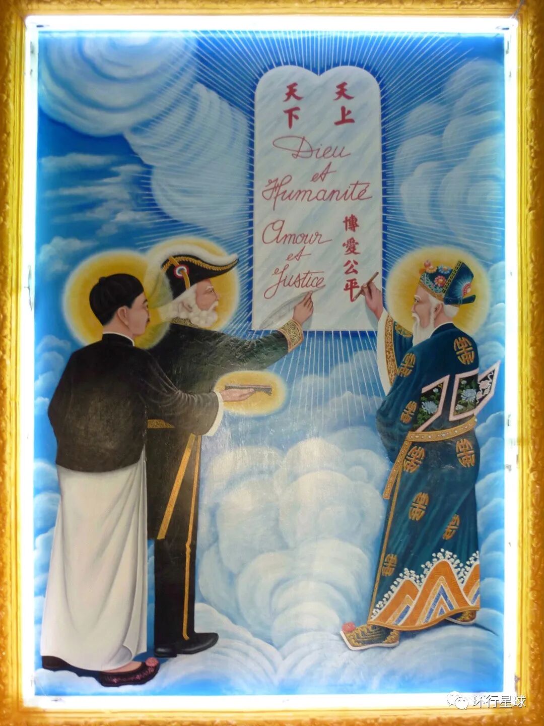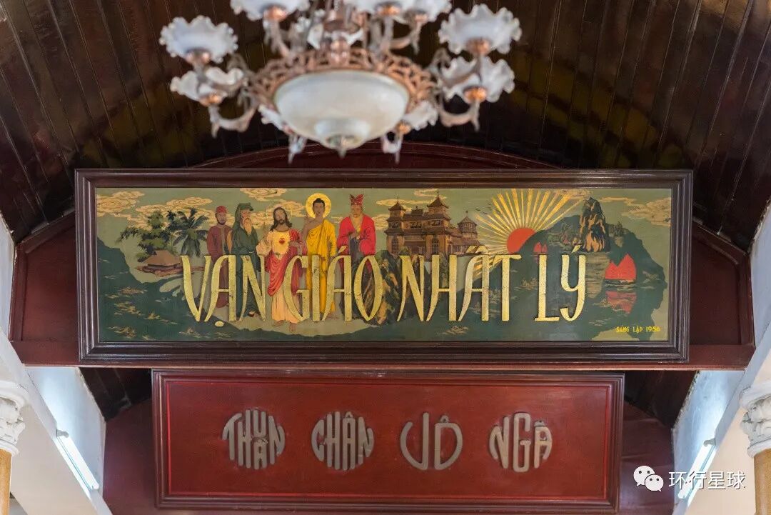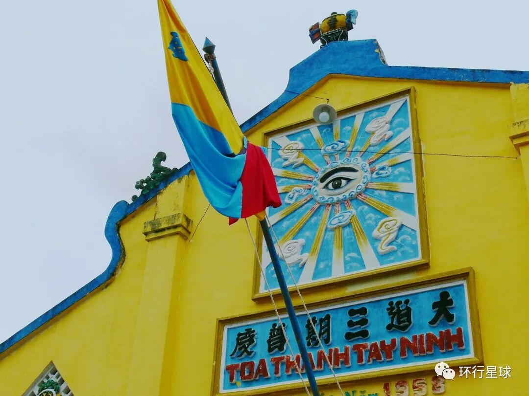 除了令人眼花缭乱的各路神明,高台教的另一特色是炸裂式审美,画风五颜六色、七彩斑斓。经典教堂西宁圣座杂糅哥特式尖顶、清真寺宣礼塔和东亚传统飞檐翘角。