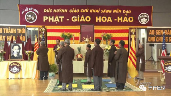 和好教仪式:摆教主照片,上香。图:Wikipedia