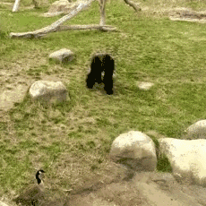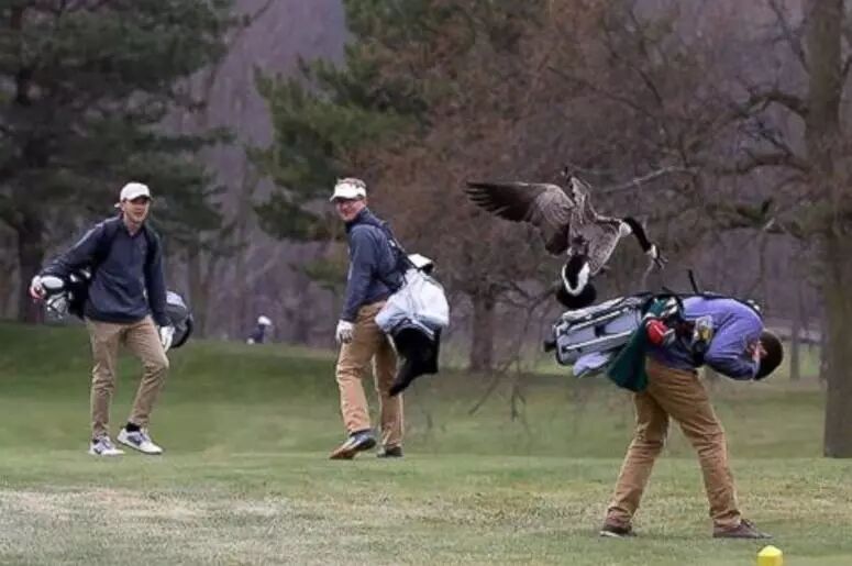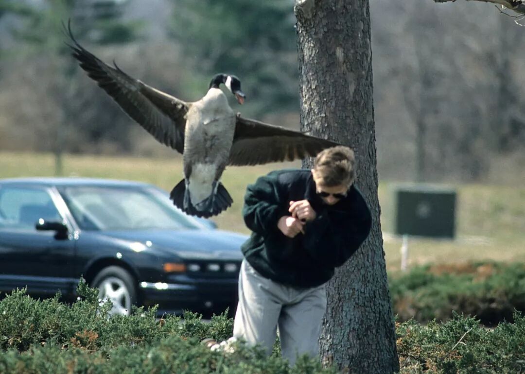 最后,加拿大雁还会记仇,如果某人或者某家宠物惹到它们,它们会守在仇人必经之路上,来一场轰轰烈烈的狭路相逢大对决,并且会以绝对的主场优势,打到仇敌们闻风丧胆,永远在雁大爷面前消失为止。