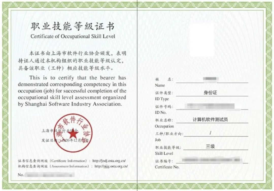 *证书由上海市软件行业协会颁发,上海市软件行业协会是经上海市人社遴选备案的面向用人单位职工开展职业技能等级认定的企业职业技能等级评价机构。(证书样张如下)
