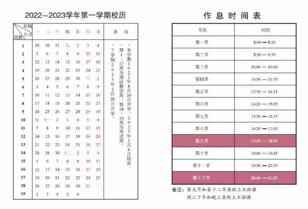 部分高校的开学时间以及校历