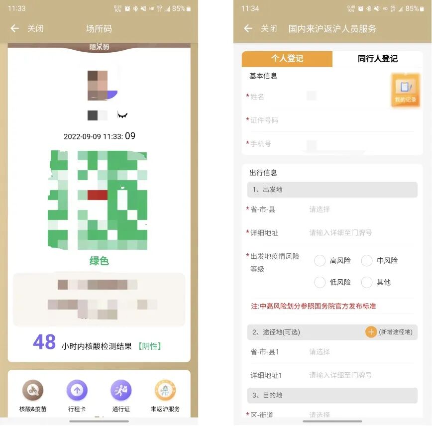 国内来沪返沪人员需在入沪前填报行程