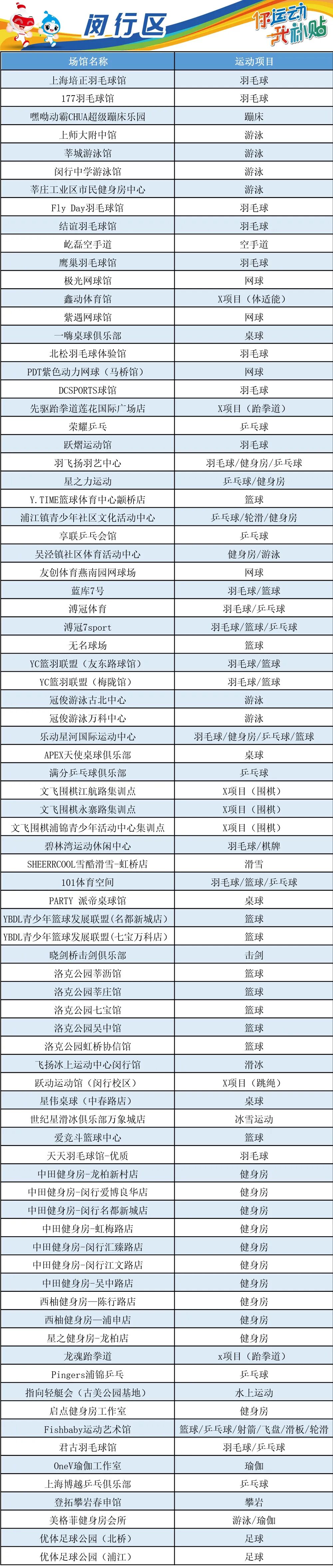 *受疫情等因素影响,场馆开放情况以实际为准。请市民实时关注,遵守场馆有关防疫规定,安全、文明、有序健身。