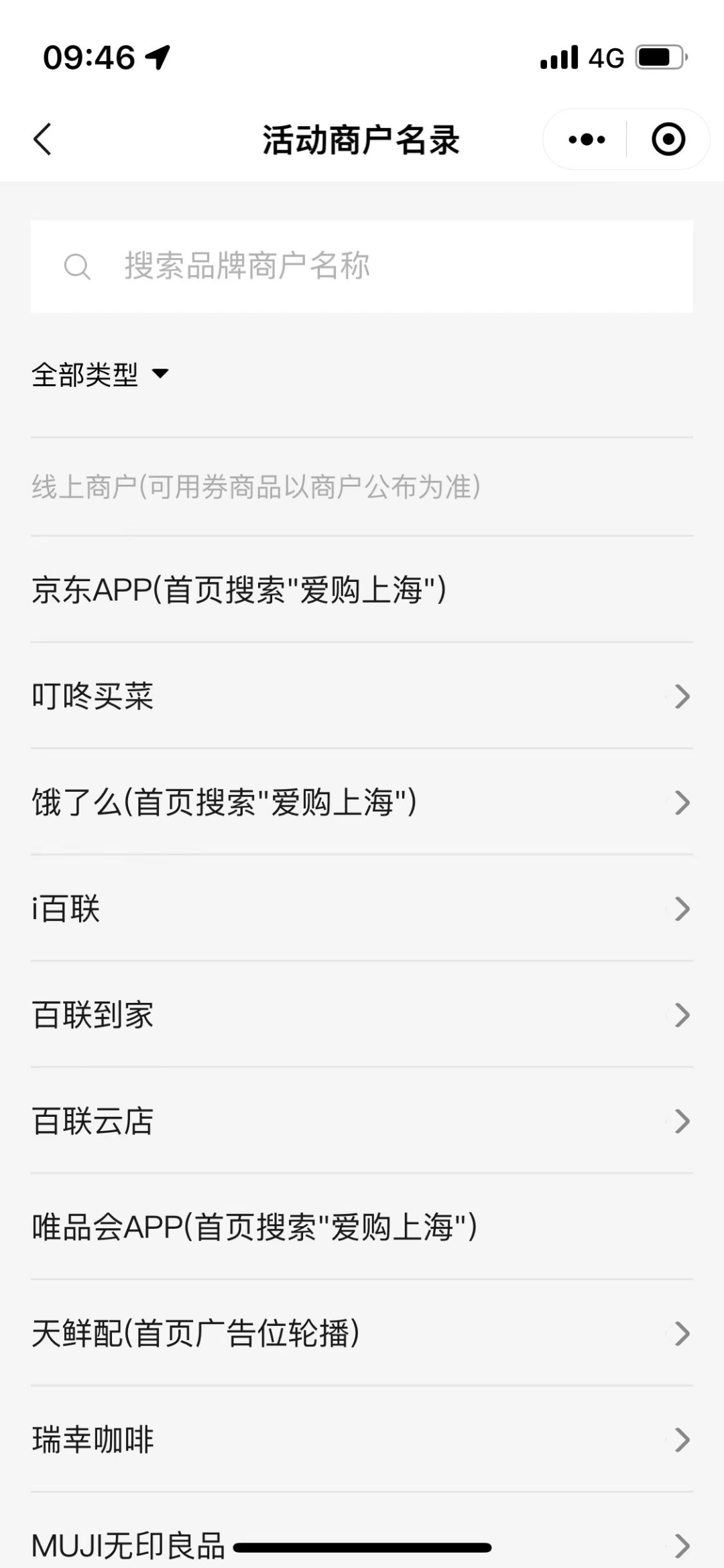 支付宝搜索“爱购上海”进入爱购上海电子消费券主页,在该页面最底部,可以查看消费券活动商户名单。