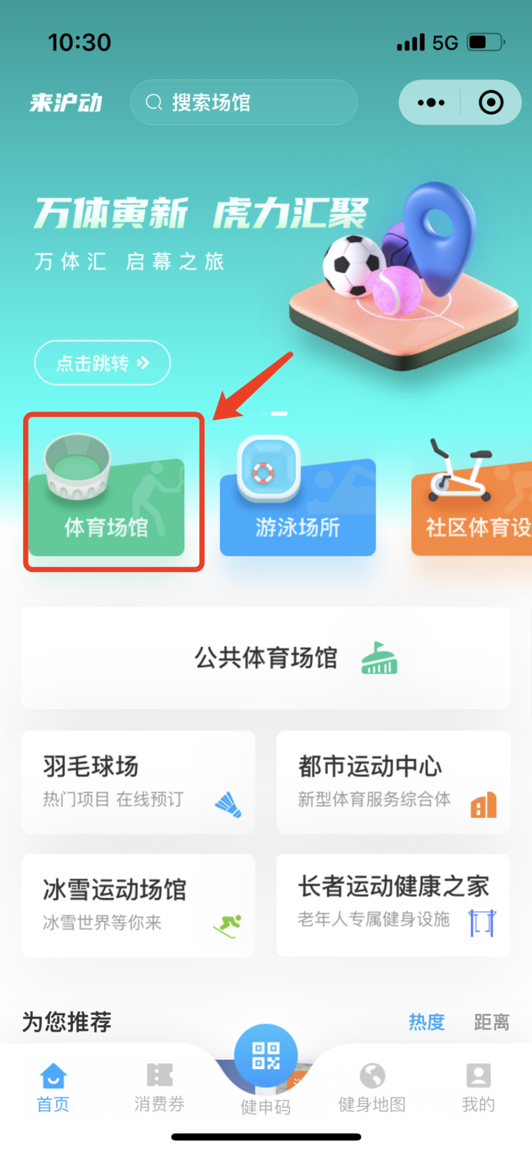 到达场馆后,扫码打开“健身地图”,点击“健申码”并向场馆出示,即可完成订单核销。