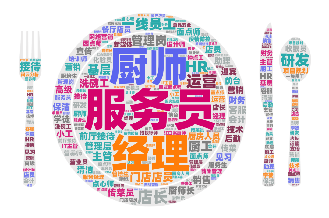 调研结果显示,前厅服务员(如店员、接待员、传菜员、服务生等)、烹饪人员(如炒锅师傅、面点师傅、专业菜系厨师等)、厨房工作人员(如洗碗工、切配工等)等一线服务岗位是需求较为紧张;基层管理岗位如店长、经理等也存在较大需求。疫情暴发后,企业除了对一线服务和管理人员存在较大需求外,对商务运营、平台维护、营销策划、平面设计等电商营销相关新岗位需求上涨同样明显。