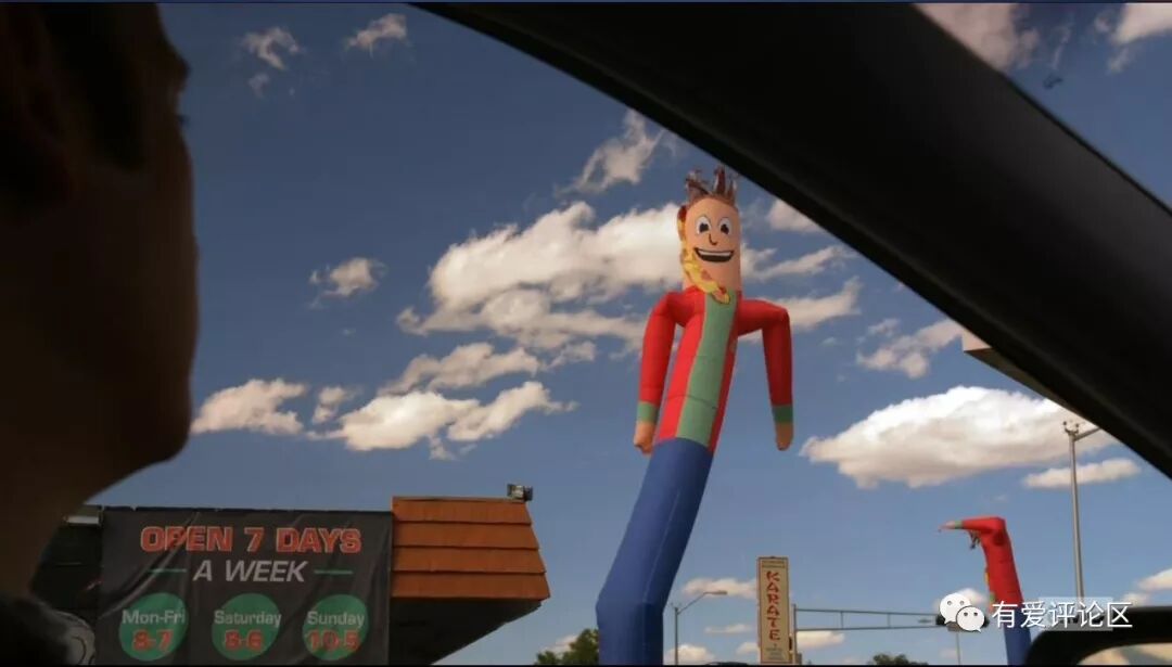 Inflatable意为可充气的,在剧里指下图这个随风飘扬的气球人,Jimmy看到它的“风骚走位”后“深受启发”,想出了可以从Davis & Main退出而不失去奖金的方法——消极怠工,被对方辞退。
