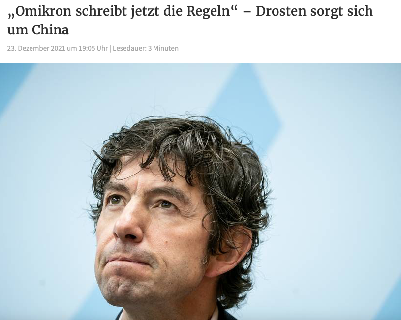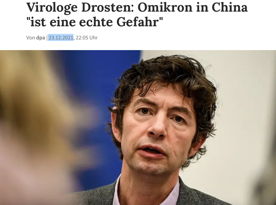 早在去年12月23号,当奥密克戎在德国出现,并迅速扩散后,德罗斯滕表示,最让他担忧的是中国。(我当时怕被封号,所以就没提到他有说过这话。至于他当初为何这么认为,还是不要多说了。)