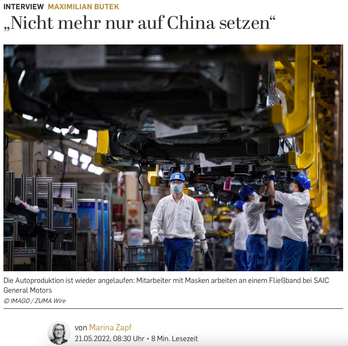 昨日,德国《资本》(Capital)杂志刊登了一篇采访。对中德经济关系感兴趣的同学们可以阅读原文。受访者是德国工商大会上海代表处首席代表、上海德国海外商会执行董事Maximilian Beutek。