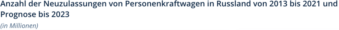 2013年至2021年俄罗斯新乘用车注册数量及2022和2023年的预测(以百万辆汽车未计算单位)