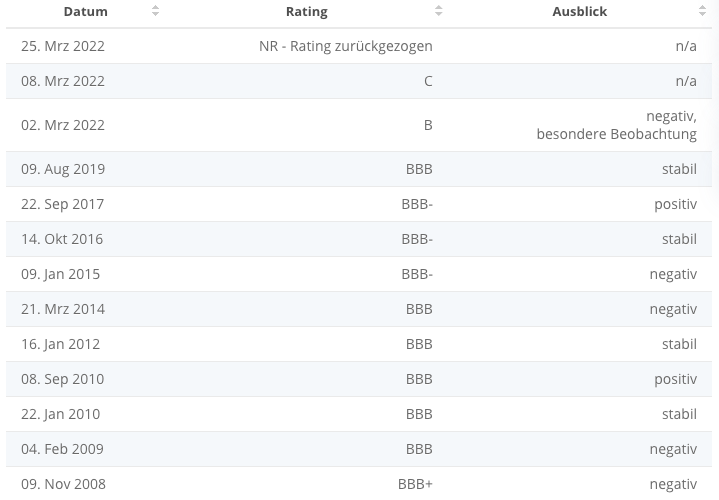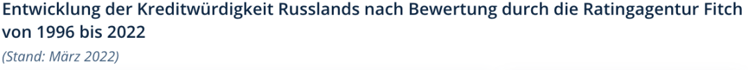 根据评级机构惠誉(Fitch)从1996年到2022年的评级,俄罗斯的信用度发展。