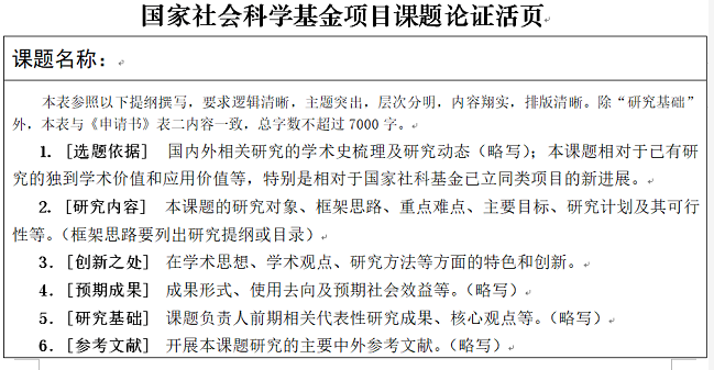 (2022年度国社科项目申报活页)