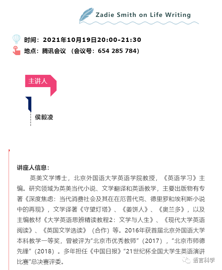 讲座时间:2021/10/20 19:00