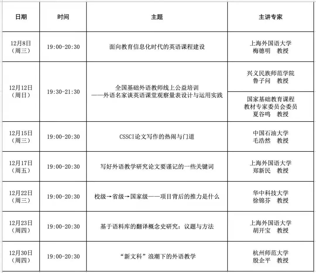 主讲专家:胡开宝教授、毛浩然教授、许明武教授等