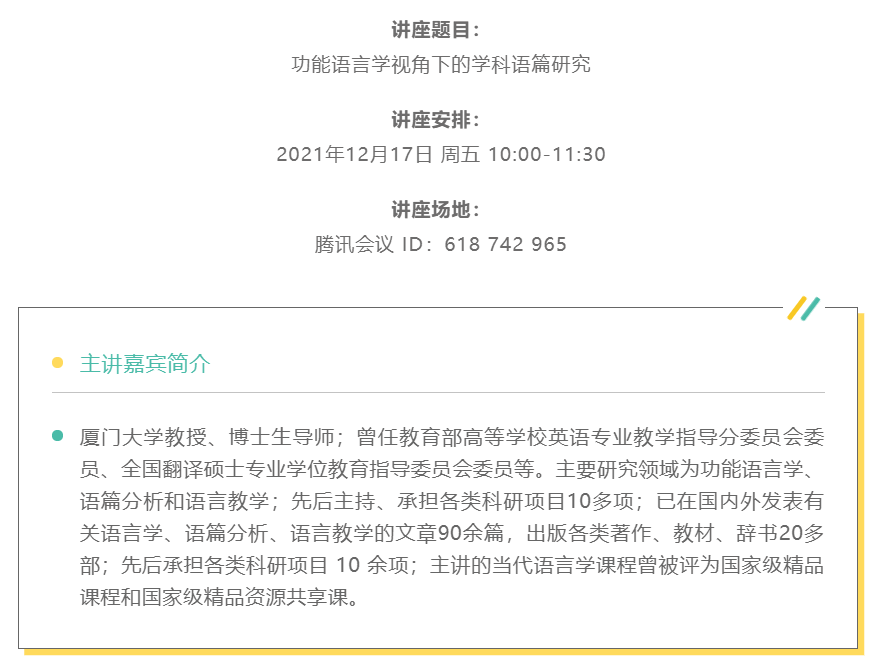 3.讲座名称:功能语言学视角下的学科语篇研究