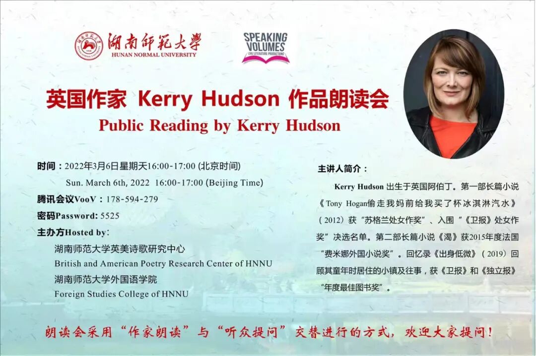 16.讲座名称:英国作家Kerry Hudson 作品朗读会