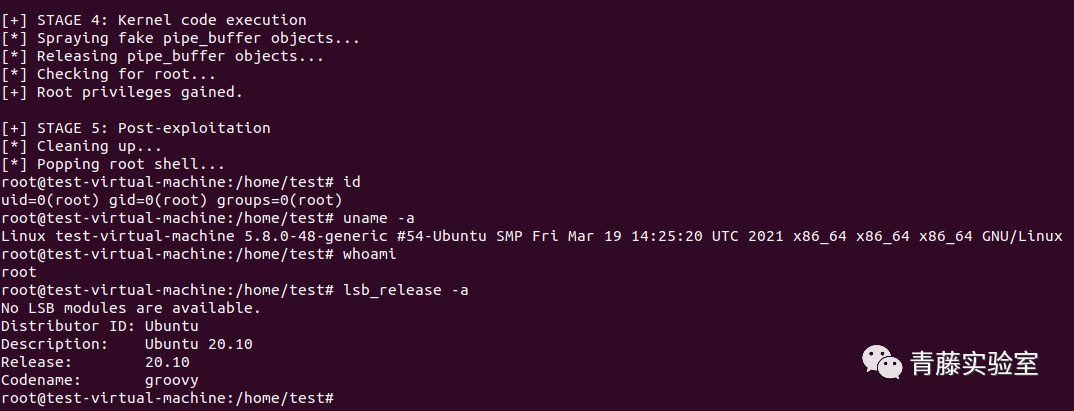 从作者Andy Nguyen的视频可以得知,原EXP在Container-Optimized OS 5.4.89 系统上可容器逃逸成功。