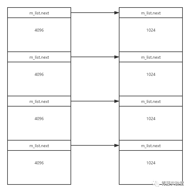 接下来,使用msgsnd为每个消息队列发送一条大小为 1024的消息,这条1024大小的消息会链在4096大小的消息中,保存在 struct msg_msg 的成员 struct list_head m_list 中