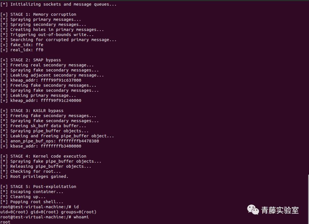 作者Andy Nguyen提供的exp在本环境下并不能直接提权成功,需要适配相关ROP链,这里给出部分代码