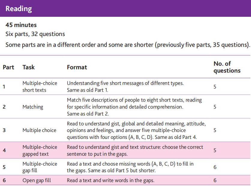 Ø在A2 Key/A2 Key for Schools考试中,阅读和写作部分的分配将更加均衡,