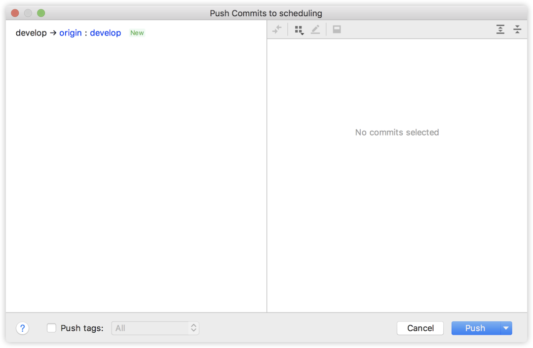 最后,选择 develop->Push,将代码提交到远程仓库。