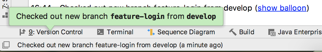 现在假设我们想从 develop 上拉一个名为 feature-login 的分支,来完成登录功能,如下: