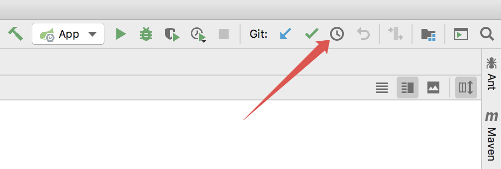 也可以直接点击 IDEA 右上角的时钟图标,快速打开提交日志: