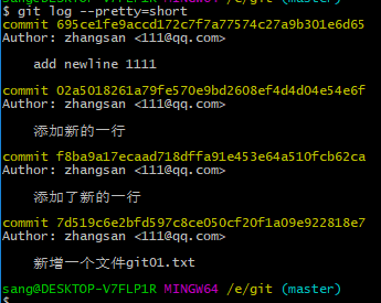 commit 之后,可以看到内容已经撤销了,提交日志中也多了一条记录,如下图: