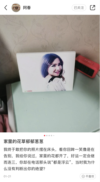 难道他们连继续生活下去的权力都没有?一定要给这些网友表演自己的悲痛才行吗?这不是乔任梁希望见到的,也不是关心两位老人的乔任梁粉丝、他们身边的亲友,所愿意见到的。乔妈妈在乔任梁逝世三年后,从2019年开始在社交平台上更新内容。