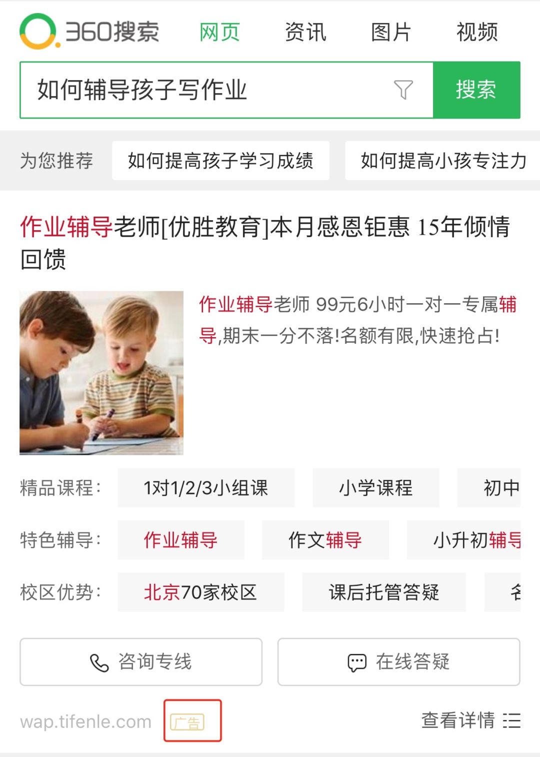 |搜索“如何辅导孩子写作业”,方法没有,广告任您挑选