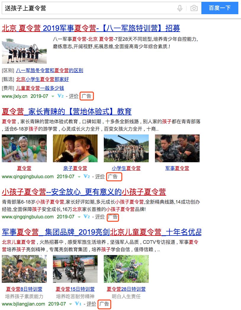 |搜索“送孩子上夏令营”,也逃不掉广告的轰炸