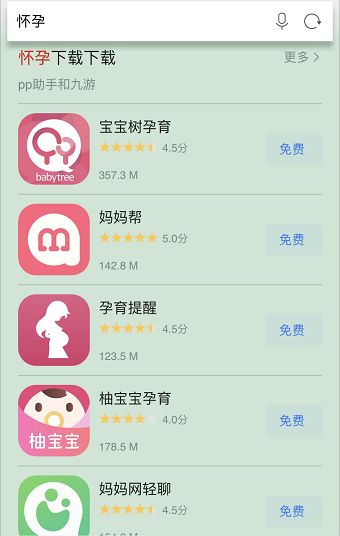 在某搜索引擎搜索“怀孕”,第一页的搜索结果上,甚至直接开始了相关app推荐……