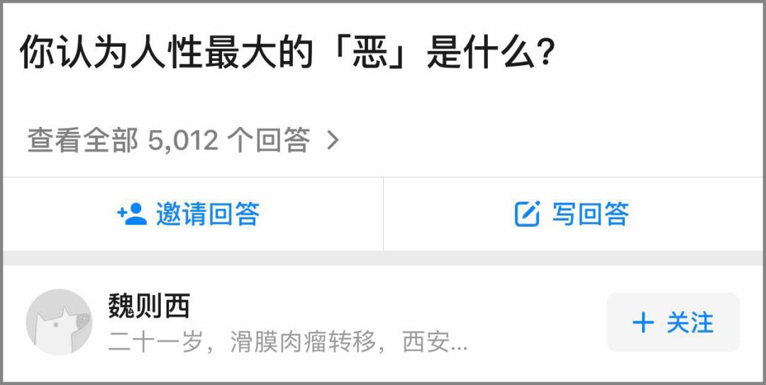 直到2016年2月26日,一位名叫魏则西的青年,在知乎上回答了一个叫作”你认为人性最大的「恶」是什么?“的问题。