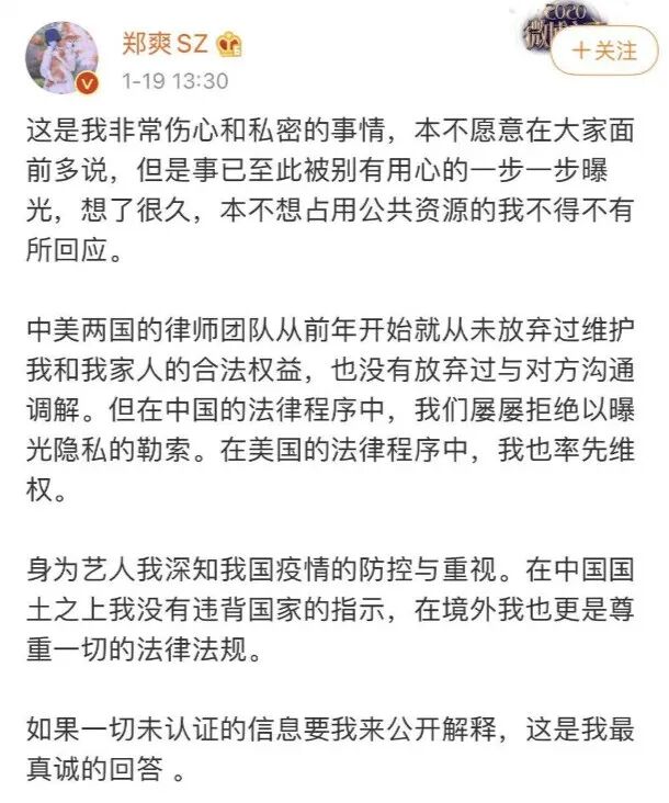 作为一名文字工作者,我在这里尝试总结一下郑爽回应的中心思想,大约就是: