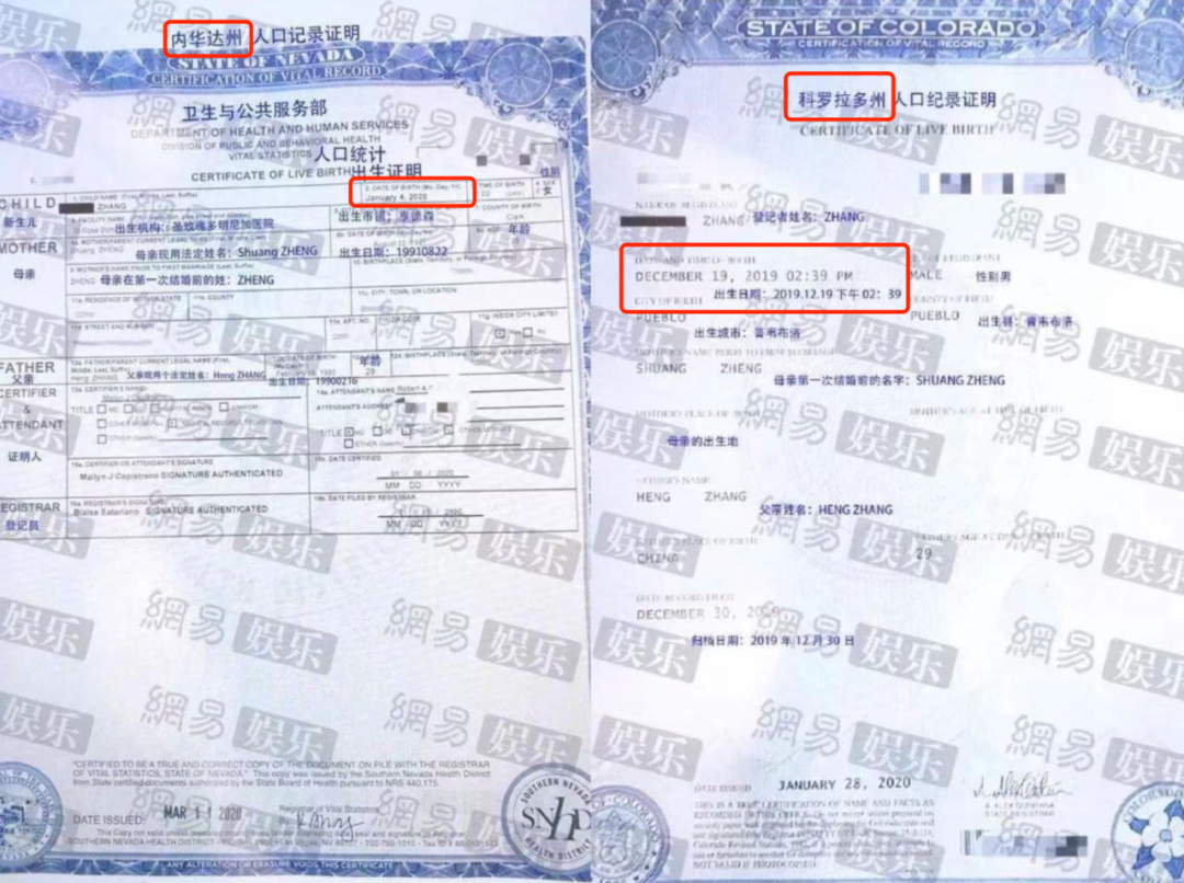 反过来说,通过这份回应,她也算变相承认了自己“代孕+弃养”的事实。昨天被曝光的出生证,也佐证了这一点。母亲名“ZHENG Shuang”父亲名“ZHANG Heng”的两个孩子,一个出生在美国内华达,一个出生在科罗纳,出生时间前后相隔一个月。
