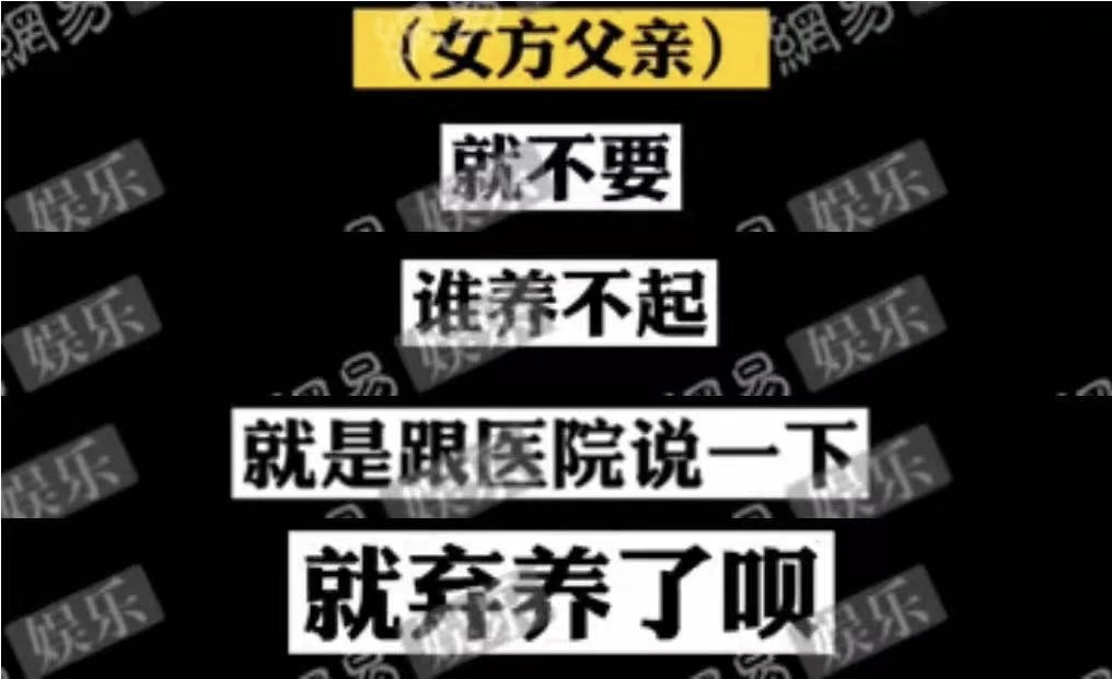 昨晚网易娱乐曝光了张郑两家人关于孩子问题的录音,其中,郑爽父母对孩子的态度是:孩子就不要,养不起,跟医院说一下,就弃养呗。